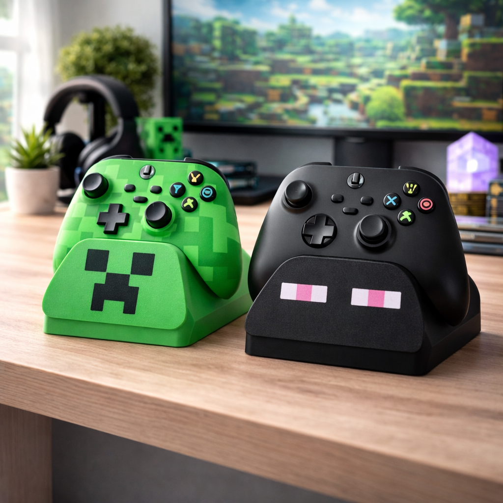 Suportes personalizados para controles de videogame, combinando funcionalidade e identidade. Perfeitos para organizar o setup e exibir sua paixão pelos games.